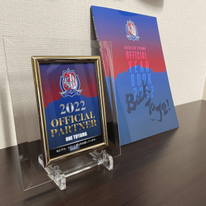 本社には盾とオフィシャルイヤーブックを装飾させていただきました。
