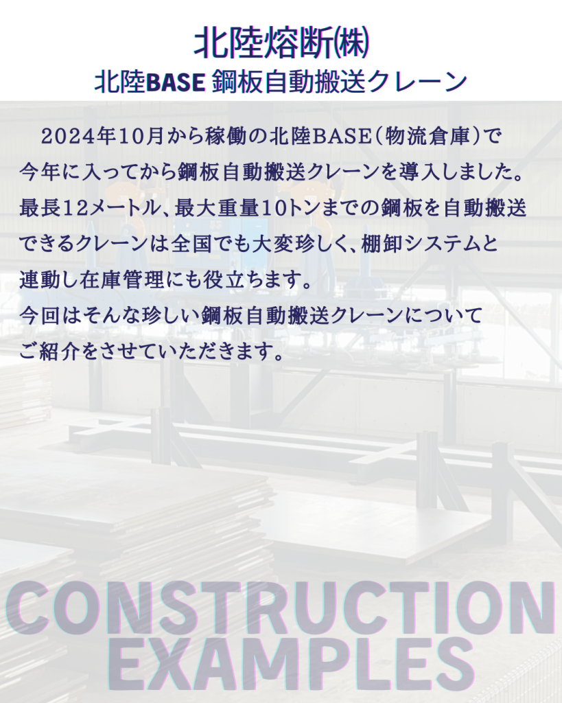 Instagram 設備紹介~北陸BASE 鋼板自動搬送クレーン~