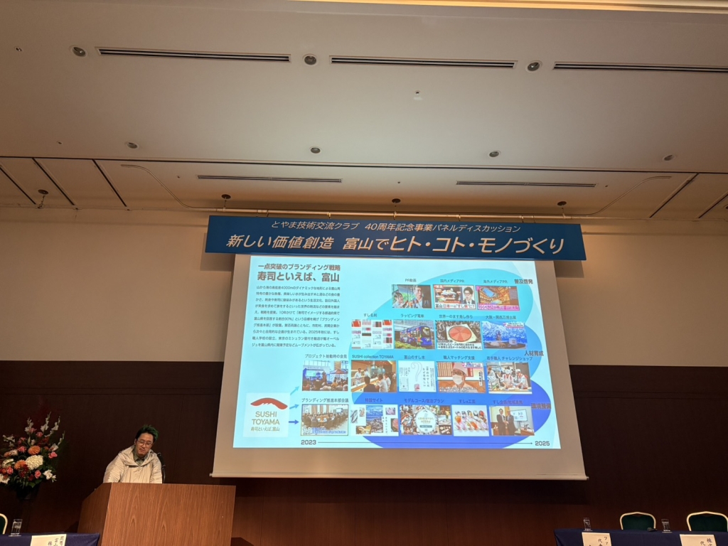 高木氏は講演の中で、「寿司といえば富山」というブランド戦略を例に挙げながら、