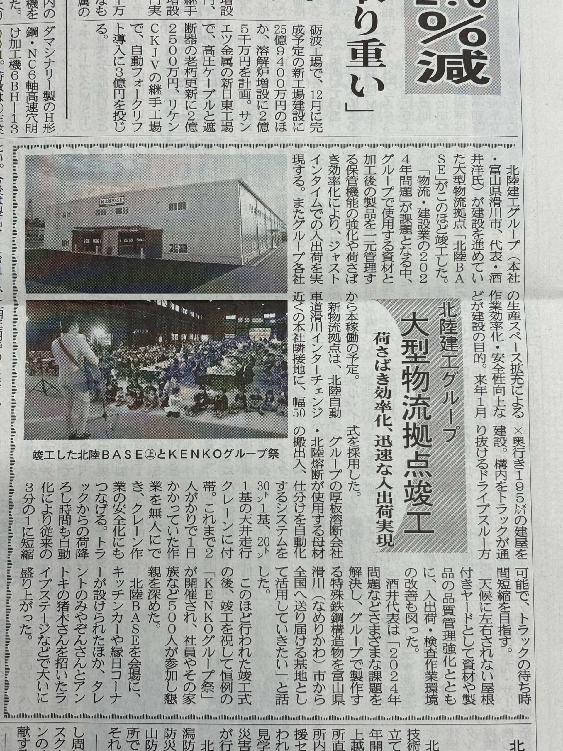 北陸BASE竣工・KENKOグループ祭が鉄鋼新聞に掲載されました!